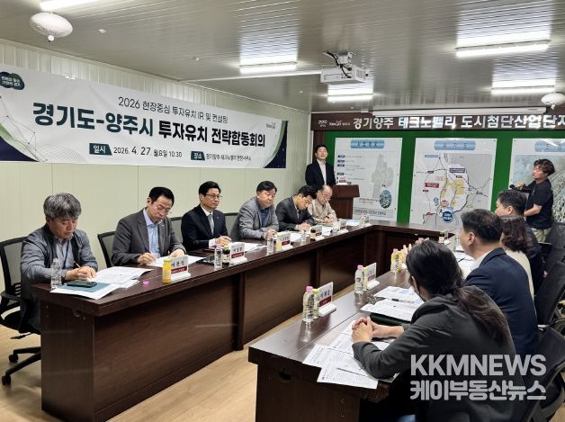 KKMNEWS 김교민 기자 | 경기도는 27일 경기양주 테크노밸리 현장사무소에서 ‘경기도–양주시 투자유치 전략합동회의’를 열고, 양주시 주요 개발사업 현황을 공유하며 투자유치 협력 방안과 실행 전략을 논의했다.
