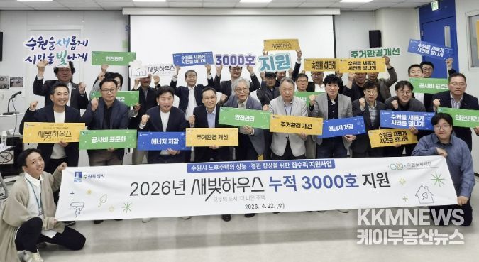 올해 안에 수원시가 오래된 저층주택의 집수리를 지원하는 새빛하우스가 3천호로 늘어난다. 수원시는 올해 지원 대상 904호를 추가해 올해 내에 누적 3천호의 집수리 지원을 완료할 예정이다. 2023년 첫 대상으로 305호가 선정된 이후 2024년 791호, 2025년 1003호에 이어 올해 904호를 선정해 총 3천3호의 낡고 낮은 집을 시민과 함께 고친다.
