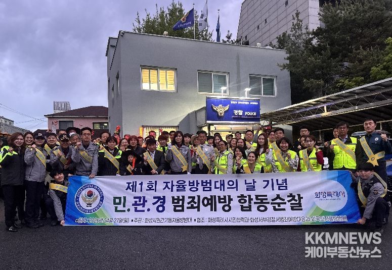 KKMNEWS 김교민 기자 | 화성특례시는 제1회 자율방범대의 날을 맞아 지난 27일 남양시장 일대에서 화성서부경찰서, 서부민간기동자율방범연합대와 함께 민·관·경 합동순찰을 실시했다.