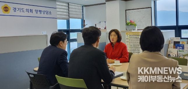 KKMNEWS 김교민 기자 | 경기도의회 기획재정위원회 부위원장 이혜원 의원 (국민의힘, 양평 2) 은 27일 양평상담소에서 경기도청 기획담당관 관계자와 함께 '경기도 행정기구 및 정원조례 개정' 관련 업무보고를 받고, 국가지원 지방도 건설 사업 및 지방채 발행 관련한 주요 현안을 점검했다.