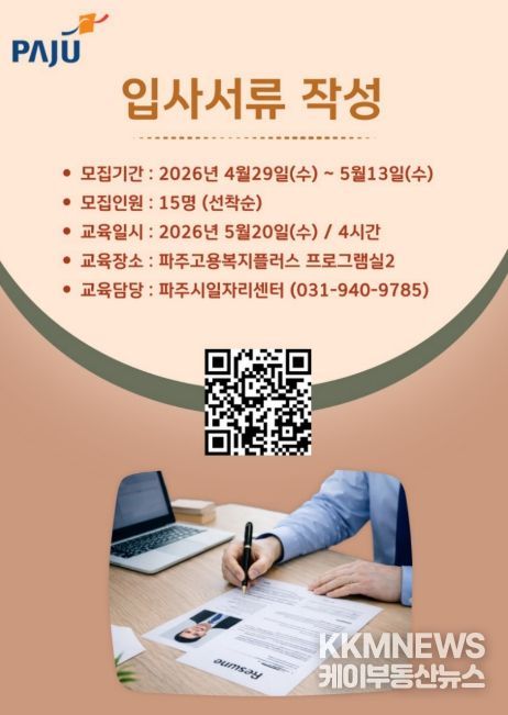 KKMNEWS 김교민 기자 | 파주시는 중장년 구직자의 원활한 노동시장 재진입을 돕기 위해 ‘입사서류 작성 실습 교육’참여자 15명을 모집한다.