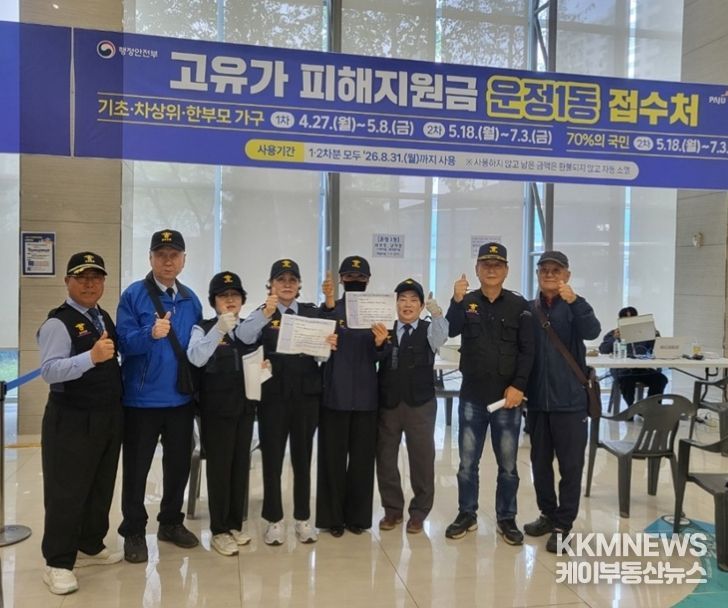 KKMNEWS 김교민 기자 | 파주시 운정1동 실버경찰대 봉사단이 고유가로 어려움을 겪는 주민들을 돕기 위해 ‘고유가 피해지원금’신청 지원 활동에 나서며 지역 민생지킴이로서의 역할을 다하고 있다.