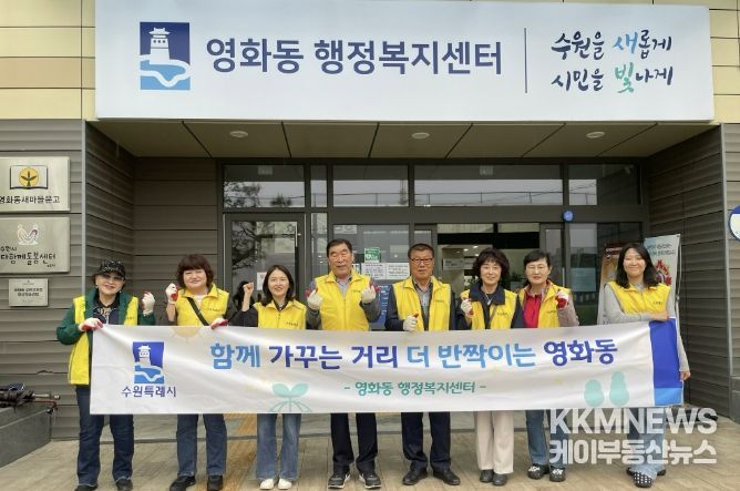 KKMNEWS 김교민 기자 | 수원시 장안구 영화동은 지난 28일, 주민자치회와 함께 거북시장 사거리 일대에서 봄철 환경정비 활동을 실시하며 쾌적한 마을환경 조성에 나섰다.