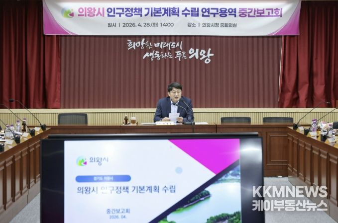 KKMNEWS 김교민 기자 | 의왕시는 4월 28일 시청 중회의실에서 '인구정책 기본계획 수립 연구용역 중간보고회'를 개최하고, 의왕시 맞춤형 인구정책 방향을 논의했다.