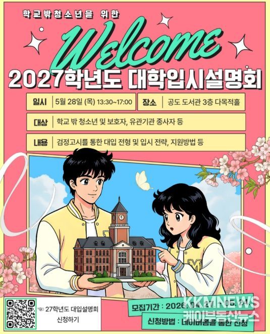 KKMNEWS 김교민 기자 | 안성시학교밖청소년지원센터는 학교 밖 청소년의 성공적인 진학을 돕기 위해 오는 5월 28일 오후 1시 30분부터 공도 도서관 다목적홀에서 ‘2027학년도 대학 입시 설명회’를 개최한다고 밝혔다.
