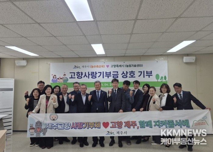 KKMNEWS 김교민 기자 | 고양특례시는 4월 29일 고양시농업기술센터에서 제주시 농수축산국과 함께 고향사랑기부금 상호 기부 전달식을 개최하고, 양 도시 간 상생 협력과 우호 증진을 다짐했다.