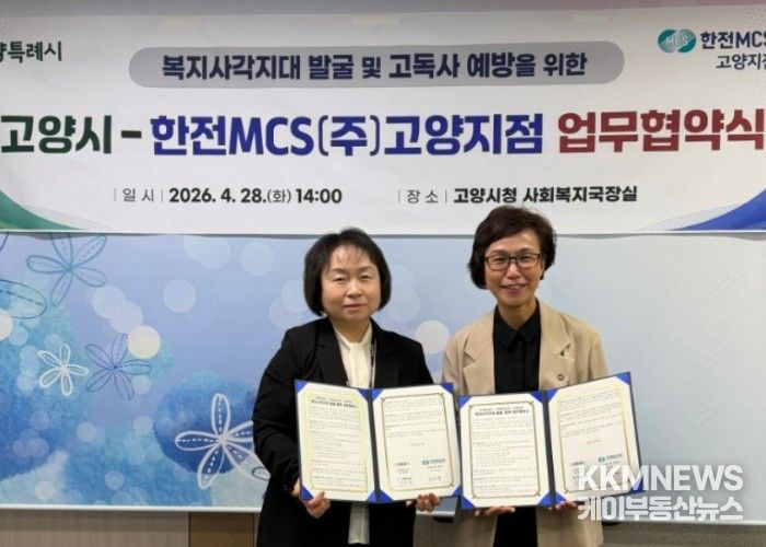 KKMNEWS 김교민 기자 | 고양특례시는 지난 28일 시청 사회복지국장실에서 한전MCS(주) 고양지점과 위기가구 발굴 및 지원을 위한 ‘온(溫)마음 복지스위치 ON’ 업무협약을 체결했다.