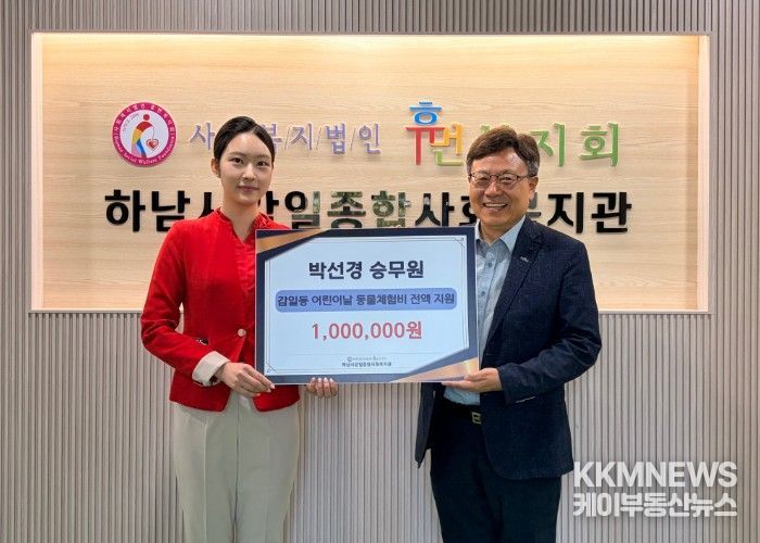 KKMNEWS 김교민 기자 | 박선경 승무원은 4월 26일, 하남시감일종합사회복지관에 감일동 어린이날 행사 운영을 위한 후원금 100만 원을 전달했다.