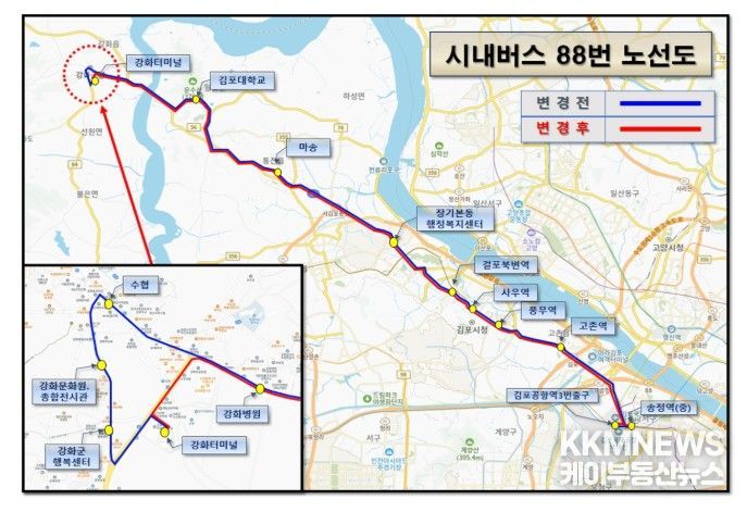 KKMNEWS 김교민 기자 | 김포시가 5월 1일부터 시내버스 88번 노선의 강화군 구간을 변경 운행한다고 밝혔다.