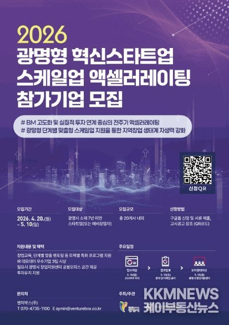 시는 오는 5월 10일까지 ‘2026년 광명형 혁신스타트업 스케일업 액셀러레이팅’ 참가기업을 모집한다.
