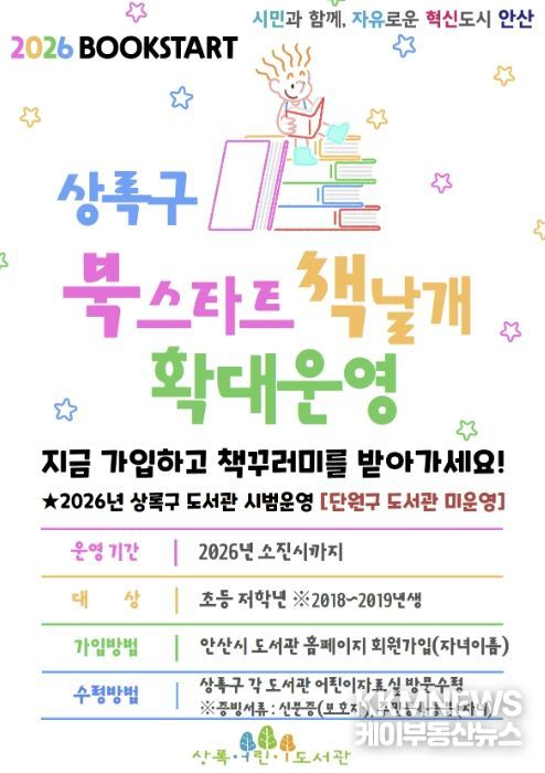 KKMNEWS 김교민 기자 | 안산시는 상록구 소재 도서관에서 운영 중인 ‘북스타트 사업’ 대상을 기존 영유아에서 초등학교 저학년 학생까지로 확대한다고 30일 밝혔다.