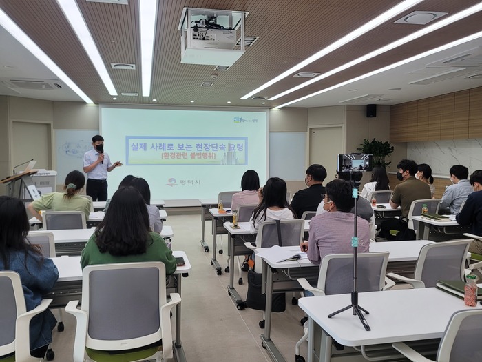 평택시는 지난 15, 16일 환경업무담당 공무원 8・9급 50여명을 대상으로 「2022환경실무 역량강화교육」을 환경교육센터에서 실시했다.
