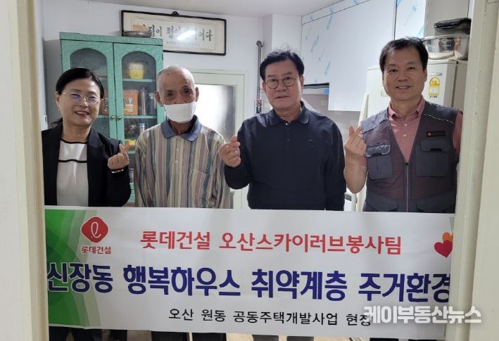 케이부동산뉴스 김교민 기자 | 오산시 신장동 지난 25일 롯데건설 오산스카이러브봉사단, 지역구 이상복 시의원과 함께 올해 세 번째 ‘행복하우스 취약계층 주거환경 개선사업’을 진행했다.