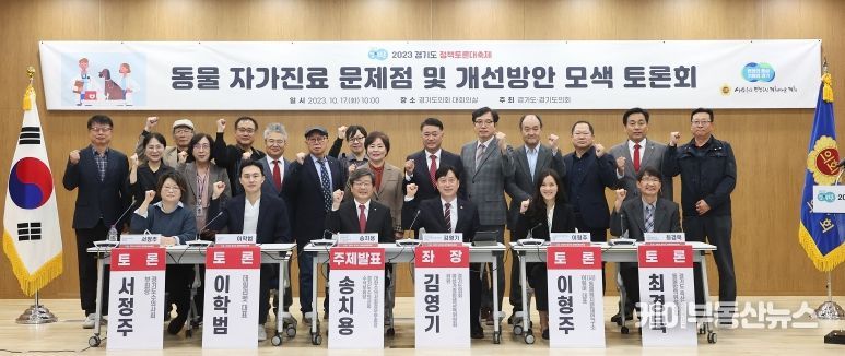 케이부동산뉴스 김교민 기자 | 경기도의회 여성가족평생교육위원회 김영기(국민의힘, 의왕1) 의원이 좌장을 맡은 '동물 자가진료 문제점 및 개선방안 모색 토론회'가 10월 17일 오전 경기도의회 대회의실에서 열렸다. 이번 토론회는 경기도와 경기도의회가 공동으로 주최하는 ‘2023 경기도-경기도의회 정책토론 대축제’의 일환으로 개최됐다.