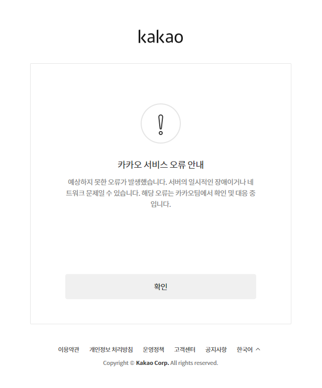 카카오(다음) 오류가 발생 했다.