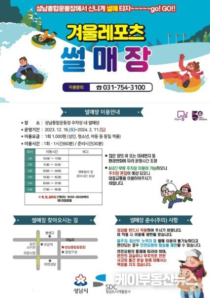 케이부동산뉴스 김교민 기자 | 성남시는 스케이트장과 눈썰매장을 각각 야탑동 탄천변(탄천종합운동장 앞)과 성남종합운동장 야외주차장에 조성해 오는 12월 16일 개장한다.