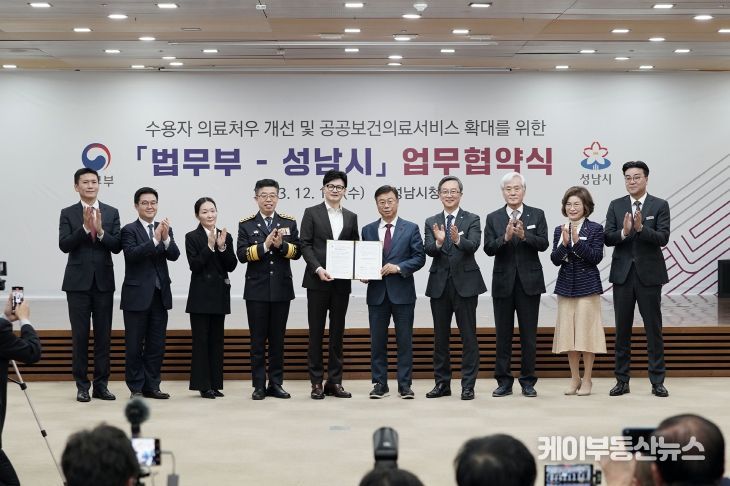 케이부동산뉴스 김교민 기자 | 성남시와 법무부는 13일 오후 3시 성남시청에서, ‘수용자 의료처우 개선 및 공공보건의료서비스 확대를 위한 업무협약(MOU)’을 체결했다.