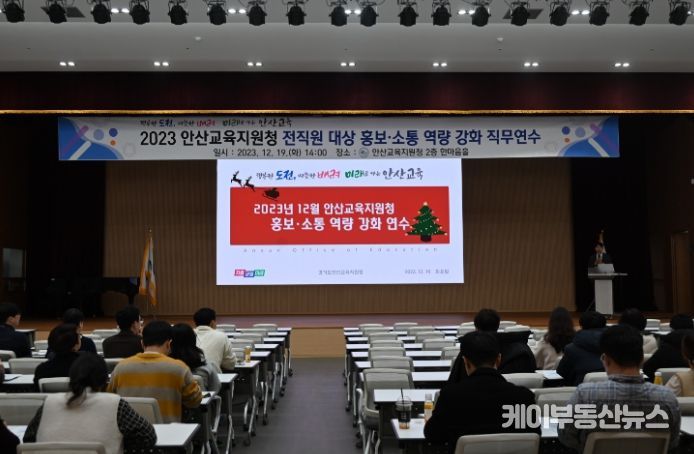 케이부동산뉴스 김교민 기자 | 경기도안산교육지원청은 지난 19일, 청내 2층 한마음홀에서 전직원을 대상으로 홍보·소통 역량강화 연수를 실시했다고 밝혔다.