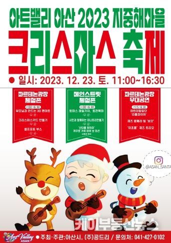 케이부동산뉴스 김교민 기자 | 아산시는 오는 23일 지중해 마을에서 ‘아트밸리 아산 2023 지중해 마을 크리스마스 축제’를 개최한다고 밝혔다.