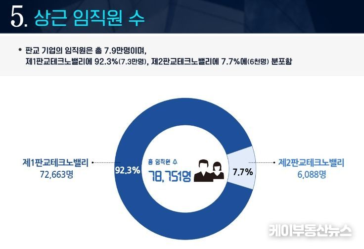 케이부동산뉴스 김교민 기자 | 판교테크노밸리에는 1,622개 기업에 7만8천여 명의 노동자가 근무한다는 조사결과가 나왔다. 판교테크노밸리의 2022년 총 매출액은 약 167조 7천억 원으로 2021년 매출 120조 8천억 원에 비해 38.8%가량 상승한 것으로 나타났다.