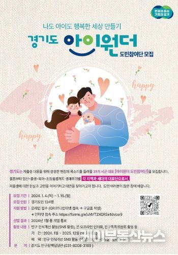 경기도가 도민의 목소리를 반영한 인구정책 마련과 저출생 인식개선 문화확산 활동을 위해 ‘아이원더’ 도민참여단 124명을 모집한다.
