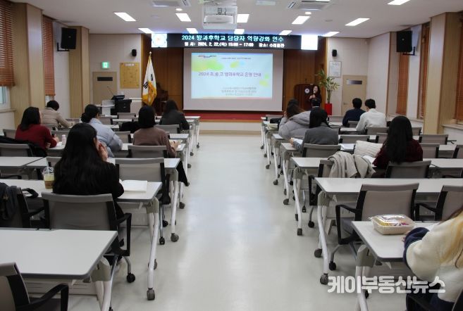 케이부동산뉴스 김교민 기자 | 경기도연천교육지원청은 2월 22일 연천교육지원청 3층 수레울관에서 연천관내 초, 중, 고등학교 21교 방과후학교 담당자 21명을 대상으로 “방과후학교 담당자 전문성 신장 및 역량 강화를 위한 연수”를 실시했다. 이날 연수에서는 방과후학교 운영 기본 계획, 운영방향, 추진과제를 제시하고, 세부사업별 운영방법과 방과후학교 관련 지침 및 길라잡이 등을 안내하여 일선 학교의 업무담당자들의 호응을 받았다.