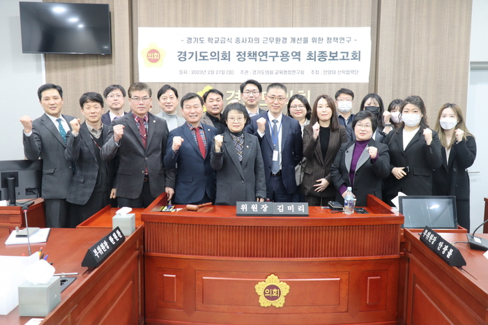 경기도의회 교육행정위원회 연구단체인 ‘교육행정연구회(회장 김미리)’는 27일(월) 교육행정위원회 회의실에서 ‘경기도 학교급식종사자의 근무환경 개선을 위한 정책연구’의 최종보고회를 개최하였다.