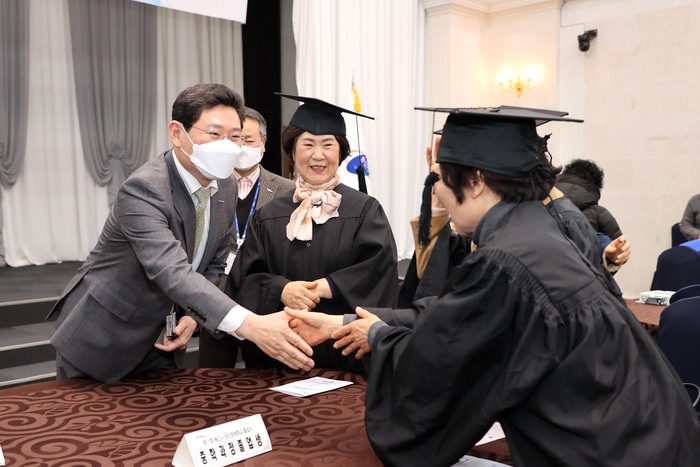 이상일 용인특례시장은 24일 시청 3층 컨벤션홀에서 열린 제11회 용인시 성인문해학교 졸업식을 찾아 11명의 졸업생에게 졸업장을 전달하고 축하 인사를 전했다.