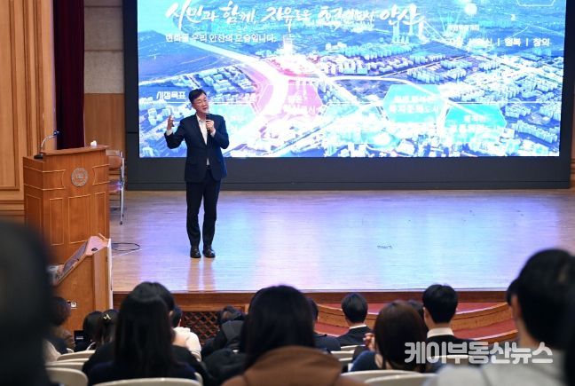 케이부동산뉴스 김교민 기자 | 안산시는 이민근 시장이 지난 5일 한양대 ERICA 학생회관 소극장에서 한양대 ERICA 학생들과 만나 간담회를 갖고 SDGs 강연을 진행했다고 6일 밝혔다.