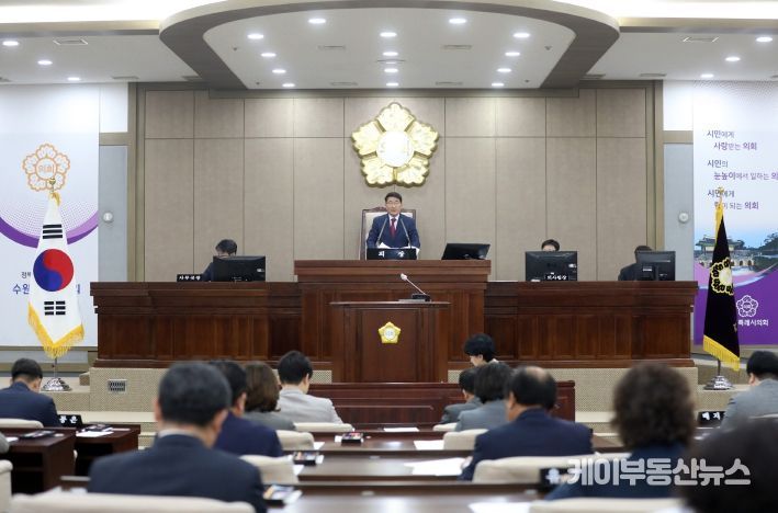 케이부동산뉴스 김교민 기자 | 수원특례시의회는 4월 22일부터 5월 3일까지 12일간의 일정으로 제381회 임시회를 개회하고 본격적인 의정활동에 들어갔다. 이번 임시회에서는 조례안 22건, 공유재산관리계획안 1건, 동의안 11건, 의견제시 3건 등 총 37건의 안건을 심의·의결할 예정이다.