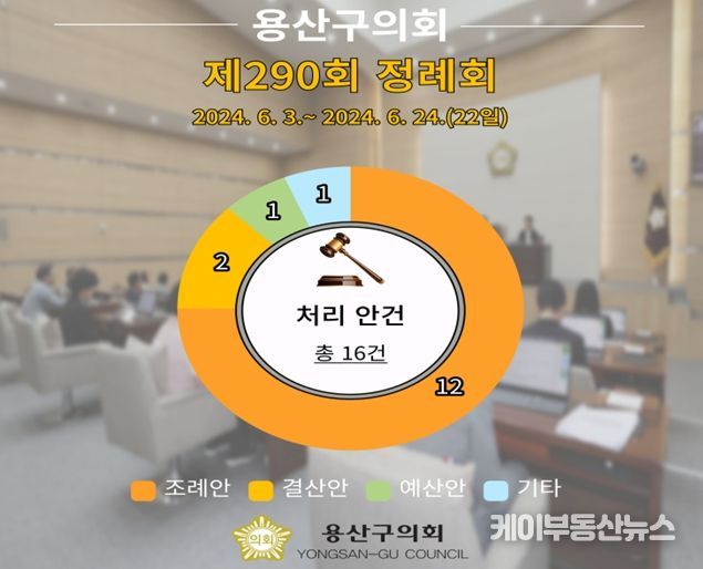 케이부동산뉴스 김교민 기자 | 용산구의회는 6월 24일 제2차 본회의를 끝으로 22일간 이어진 제290회 제1차 정례회 일정을 마무리했다.