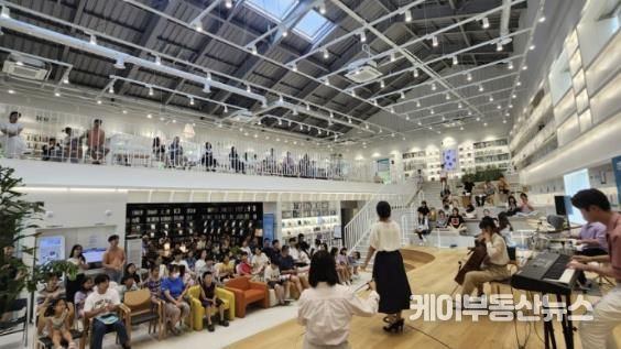 케이부동산뉴스 김교민 기자 | 지난 7월 13일 여주시 흥천도서관은 흥겨운 음악과 그 음악을 즐기는 사람들로 가득 찼다. 경기도 ‘거리로 나온 예술’ 사업의 일환으로 앙상블 수의 가야금, 해금, 피아노, 드럼, 첼로 등 동서양 악기의 협연으로 "퓨전국악 新풍류" 공연이 120여명의 관람으로 성황리에 이루어졌기 때문이다.