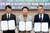 케이부동산뉴스 김교민 기자 | 의정부시가 경기북부 첨단 바이오산업의 메카로 거듭나기 위해 대학, 기업과 함께 강력한 지산학 협력 체계를 구축한다. 의정부시는 1월 30일 시청 회룡홀에서 을지대학교 산학협력단(단장 김인식), ㈜바이오간솔루션(대표 송명석)과 ‘지산학 협력 및 첨단 바이오산업 육성을 위한 업무협약’을 체결했다. 이번 협약은 관내 유치 기업인 ㈜바이오간솔루션의 안정적인 연구 공간 확보와 정착을 지원하고, 대학의 연구 인프라와 기업의 유전자 기반 원천기술을 결합해 의정부시를 글로벌 바이오산업 거점으로 조성하기 위해 마련됐다. 협약에 따라 세 기관은 ▲산학협력 기반 공동 연구과제 발굴 및 수행 ▲연구‧기술 교류를 통한 바이오산업 경쟁력 강화 ▲기업 투자 확대 및 사업 확장을 위한 행정적 지원 ▲기타 상호 발전을 위한 협력사항 등을 공동으로 추진하기로 했다. 또한, ▲시는 인프라 구축과 행정 지원을 맡고 ▲을지대학교 산학협력단은 실험 공간과 연구 장비의 공동 활용, 임상‧기초의학 기반 공동연구를 담당하며 ▲바이오간솔루션은 연구과제 발굴과 기술 상용화 등을 통해 지역사회 기여에 나선다. &nbs
