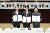 케이부동산뉴스 김교민 기자 | 부천시는 지난 28일 부천시청 소통마당에서 국회 교육위원회, 부천교육지원청과 함께 ‘독서국가 선도도시 부천 업무협약’을 체결하고, 김영호 국회 교육위원장의 ‘독서국가 교육 대전환 정책’과 연계한 ‘독서국가 선도도시 부천 선언식’을 개최했다. 이날 행사에는 김 위원장을 비롯해 교육계·도서관 관계자, 시민 등이 참석했다. 선언식에는 관내 유치원·어린이집 연합회 원장, 공공·학교·작은도서관 관계자, 초·중학교 교장, 출판·서점 관계자 등 100여 명이 함께해, 인공지능(AI) 시대에 필요한 비판적 사고력과 질문하는 힘을 기르기 위한 독서의 중요성에 대해 뜻을 모았다. ‘독서국가’는 인공지능(AI) 기술 확산 속에서 인간 고유의 사고력과 문해력을 국가 핵심 경쟁력으로 삼기 위한 교육 대전환 정책으로, 부천시는 이를 지역 실정에 맞는 생애주기별 독서 모델로 구체화해 추진한다. 시는 이번 선언을 계기로 학교와 도서관을 연계한 독서 환경을 확대하고, 유아기부터 노년기까지 전 생애를 아우르는 맞춤형 독서교육과 인공지능(AI) 기반 맞춤형 독서 서비스를 단계적으로 강화해 나갈 계획이다.
