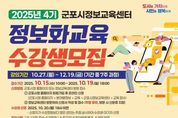 케이부동산뉴스 김교민 기자 | 군포시는 시민들의 정보화 시대에 대한 적응 능력 향상 및 정보 소외 계층의 디지털 격차 해소를 위해 운영되는 ‘2025년 4기 시민정보화교육’의 수강생을 오는 10월 15일부터 10월 19일까지 모집한다고 13일 밝혔다. 이번 교육은 컴퓨터와 스마트기기 기초 사용법부터 최신 인공지능(AI) 활용 기술까지 다양한 주제로 구성되며, 군포시민을 대상으로 총 10개 강좌가 운영된다. 수강료는 무료이나, 강좌에 따라 교재를 개별 구매해야 할 수도 있다. 수강신청은 2025년 10월 15일 오전 10시부터 10월 19일 오후 6시까지 가능하며, 군포시청 홈페이지 또는 군포시 정보교육센터(산본로324번길 8, 504호, 주말 휴무) 방문을 통해 신청할 수 있다. 이번 교육에서는 컴퓨터나 스마트폰에 익숙하지 않은 초보자를 대상으로 하는 ▲컴퓨터 기초 ▲스마트폰 기초 및 활용 ▲실용인터넷 강좌 뿐만 아니라 실생활과 업무에 유용한 ▲속성 한글 ▲엑셀 기초 ▲스마트폰 중급 강의도 포함되어 있다. 또한 최신 기술을 반영한 ▲동영상 제작 ▲3D 프린팅 ▲ChatGPT · 생성형AI ▲AI활용 유튜브 콘텐