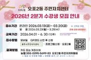 케이부동산뉴스 김교민 기자 | 광주시 오포2동 주민자치센터는 오는 4월 1일 개관을 앞두고 3월 13일부터 20일까지 ‘2026년 2분기 주민자치 프로그램’ 수강생 924명을 선착순 모집한다. 오포2동 주민자치센터는 지난 2022년 오포읍에서 분동된 이후 3년 만에 양벌로 336에 새롭게 조성됐다. 시는 오는 26일 개관식을 개최한 뒤 4월 1일부터 본격적인 운영에 들어갈 예정이다. 이에 따라 그동안 인근 지역 시설을 이용해야 했던 주민들의 불편이 해소되고 생활권 내에서 주민자치 프로그램을 이용할 수 있는 여건이 마련됐다. 이번 2분기 프로그램은 4월부터 6월까지 3개월간 운영되며 건강·스포츠 강좌, 문화·예술 강좌, 교육·기술 강좌, 어린이 강좌 등 총 41개 과정으로 구성됐다. 수강 신청은 3월 13일부터 20일까지 광주시 주민자치센터 누리집을 통한 온라인 접수 방식으로 진행된다. 다만, 정원 미달 강좌에 한해 3월 23일부터 25일까지 오포2동 주민자치센터에서 현장 방문 접수도 추가로 실시할 계획이다. 수강료는 강좌별로 3개월 기준 5만4천 원에서 7만2천 원까지이며, 국가유공자와 장애인, 한