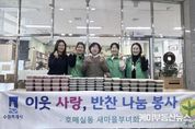 케이부동산뉴스 김교민 기자 | 수원시 권선구 호매실동 새마을부녀회는 지난 26일, 관내 취약계층 가구를 대상으로 나눔의 손길을 전하고자 ‘사랑의 반찬 나눔’ 행사를 진행했다. 이날 행사는 호매실동 행정복지센터에서 진행됐으며 새마을부녀회원들이 직접 만든 △불고기 △무생채 △시래기된장국 등 반찬들을 포장하여 관내 취약계층 40가구에 직접 전달했다. 영양 가득 따뜻한 반찬을 전달받은 주민들은 부녀회 회원들에게 감사의 인사를 전했다. 조창순 새마을부녀회장은 “어느새 겨울이 성큼 다가온 쌀쌀한 날씨에도 불구하고 주위 이웃들에게 온정을 나눌 수 있는 뜻깊은 시간이었다”라며, “호매실동 모든 주민들이 올겨울 건강하게 지내시길 바란다”라고 말했다. 이정훈 동장은 “이른 아침부터 봉사한 새마을부녀회에 감사드린다”라며 “앞으로도 다양한 나눔 행사를 통해 온정 넘치는 호매실동이 될 수 있도록 노력하겠다”라고 전했다.