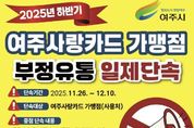 케이부동산뉴스 김교민 기자 | 여주시는 지역화폐인 여주사랑카드의 부정유통 근절을 위해 지난 11월 26일부터 오는 12월 10일까지 집중 단속에 나선다고 밝혔다. 주요 단속 대상은 ▲ 물품의 판매 또는 용역의 제공 없이 지역화폐를 수취·환전하는 행위 ▲ 실제 매출금액 이상의 거래를 통하여 지역화폐를 수취·환전하는 행위 ▲ 가맹점이 등록 제한업종을 영위하는 경우 ▲결제를 거부하거나 다른 결제 수단에 비해 불리하게 대우하는 행위 ▲기타 단속이 필요성이 있다고 인정되는 경우 등이다. 이번 일제 단속은 가맹점 데이터 목록을 참고 및 주민 신고 등을 토대로 의심되는 현장을 방문해 확인하는 방식으로 진행된다. 여주시 일자리경제과 관계자는 “지역화폐 제도의 지속가능성, 신뢰성을 확보하고 지역 자금의 역외유출 방지를 위해서는 여주사랑카드 사용자와 가맹점주 모두 함께 힘을 합쳐야 건전한 유통 문화를 만들어갈 수 있다”협조를 당부했다. 부정유통 적발 시 여주사랑카드 가맹점 등록취소, 관계 법령에 따라 최대 2,000만원 이하의 과태료가 부과될 수 있으며, 위반행위 조사를 거부·방해 또는 기피하는 경우에도 최대 500