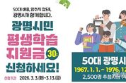 케이부동산뉴스 김교민 기자 | 광명시가 50대 중장년 시민의 배움 기본권 보장을 위해 올해도 평생학습지원금 지원을 이어간다. 시는 오는 3월 3일부터 13일까지 11일간 ‘2026년 광명시민 평생학습지원금’ 신청을 받는다고 26일 밝혔다. 광명시민 평생학습지원금은 생애 전환기를 맞은 50대 시민이 나이·소득·배경과 관계없이 배움을 지속할 수 있도록 생애 1회 1인당 30만 원의 평생학습이용포인트를 지원하는 사업이다. 시민 스스로 자신의 삶과 필요에 맞는 학습을 선택하도록 돕는 것이 핵심 목적이다. 박승원 광명시장은 “배움은 선택이 아닌 누구에게나 보장돼야 할 기본권”이라며 “시민이 나이나 환경의 제약 없이 언제든지 배움을 이어갈 수 있도록 평생학습 기반을 더욱 탄탄히 만들어가겠다”고 밝혔다. 신청 대상은 1967년 1월 1일부터 1976년 12월 31일 사이에 출생한 50대 광명시민이다. 광명시에 1년 이상 계속 거주했거나, 거주기간을 합산해 5년 이상 거주하고 있어야 한다. 시는 총 2천500명을 선정해 지원한다. 59세(1967년생)는 올해가 마지막 지원 대상임을 고려해 우선 선정하