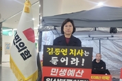 케이부동산뉴스 김교민 기자 | 경기도의회 교육행정위원회 이애형 위원장(국민의힘, 수원 세류1·2·3동·권선1동)은 26일, 경기도의회 1층에서 진행 중인 백현종 국민의힘 대표의원의 단식 농성 현장을 찾아 지지 의사를 밝히고, 경기도의 복지예산 삭감에 대한 강한 우려와 책임 있는 조치를 촉구했다. 이애형 위원장은 “도민의 복지와 삶의 질을 최우선으로 책임져야 할 경기도가 어르신·장애인 등 취약계층 예산을 대거 삭감한 것은 도민을 사지로 몰아넣는 것”이라고 비판했다. 이어 “이재명표 사업 예산만 선택적으로 증액된 내년도 예산안은 더 이상 도민을 위한 행정이라고 보기 어렵다”며 “무책임한 정무·협치라인을 즉각 교체해야 한다”고 목소리를 높였다. 앞서 경기도의회 국민의힘은 지난 25일 기자회견을 통해 경기도의 2026년도 본예산안 편성과 관련해 ▲복지예산 대폭 삭감 ▲필수 민생사업 예산 축소 ▲이재명표 사업 집중 증액 등 예산 불균형을 지적하며 김동연 지사의 정무·협치라인 파면을 요구한 바 있다. 백현종 대표의원은 이 같은 문제의 책임을 묻겠다며 무기한 단식 농성에 들어간 상태다. 이 위원장은 “예산은 특정 정치인을 위한 도구가 아니라 도민의 삶을 지키는 최소한의