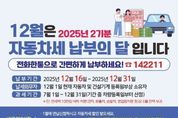 케이부동산뉴스 김교민 기자 | 평택시는 2025년 12월 정기분 자동차세 16만 5천 건에 대해 199억 원을 부과·고지하고 납부 기한 내 납부하도록 적극적인 홍보에 나섰다고 밝혔다. 자동차세는 연 2회(6월, 12월) 부과하는 정기분 세목으로, 이번 제2기분 자동차세 부과 대상은 과세기준일인 12월 1일 현재 평택시에 등록되어있는 자동차, 이륜차, 건설기계 등이며, 7월 1일부터 12월 31일까지의 보유기간에 대해 차량의 용도와 차종, 배기량, 차령에 따라 세액을 차등 적용하여 부과한다. 아울러, 연세액 10만 원 이하의 경차·화물차·승합차량은 6월에 전액 과세하나 6월 이후에 취득했다면 이번 제2기분 과세 대상에 포함되며, 자동차세를 연납한 차량은 이번 과세 대상에서 제외된다. 납부 기한은 12월 16일부터 31일까지이고, 고지서는 우편 발송되며 전자고지 신청자는 전자우편 또는 모바일 앱에서 확인이 가능하다. 납부는 ‘지방세입계좌’ 서비스를 통해 이체 수수료 없이 납부할 수 있으며, 이외에도 전국 금융기관 방문 혹은 은행 자동화기기(CD/ATM) 등에서도 고지서 없이 신용카드 또는 통장으로 납부