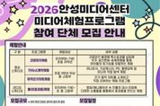 케이부동산뉴스 김교민 기자 | 안성미디어센터는 지역 어린이와 청소년이 미디어를 쉽고 재미있게 접할 수 있도록 ‘2026년 미디어체험프로그램’에 참여할 관내 어린이집, 유치원, 학교 등 단체를 모집한다고 밝혔다. 이번 프로그램은 아이들이 영상과 소리를 직접 다뤄보며 미디어의 원리를 이해하고 창의력과 표현력을 키울 수 있도록 기획된 체험형 교육이다. 영상·라디오 스튜디오를 활용해 진행되며, 공간·대상별 직업체험과 미디어 놀이 중심의 구성으로 어린이와 청소년이 즐겁게 참여할 수 있는 것이 특징이다. 2026년에는 ▲크로마키 체험(우주·세계여행 영상 촬영) ▲TV 뉴스 제작 체험 ▲뮤직 차트 방송 제작 ▲폴리(효과음) 체험 등 다양한 프로그램이 마련된다. 각 프로그램은 연령대에 맞춰 구성되며, 방송 직업 탐색과 실습 중심 활동을 통해 참여자의 흥미와 몰입도를 높인다. 모집 대상은 안성시 관내 6세 이상 어린이부터 초·중·고등학생이 포함된 어린이집, 유치원, 학교, 기관 등 단체로, 최소 10명에서 최대 30명 내외의 15개 팀을 선착순 모집한다. 체험비는 전액 무료이며, 프로그램은 오는 2월부터 5월까지 매주 수요일