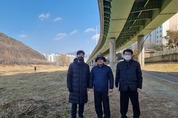 안양시의회 도시건설위원회 위원장(이재현)은 지난 24일 도시건설위원회 소속 이동훈 의원, 관계부서 공무원들과 함께 안양천 일대를 둘러보고 하천 시설물을 점검하였다. 이날 쌀쌀한 날씨에도 불구하고 충훈2교(석수동)에서 쌍개울 문화광장(비산동)까지 5km 구간을 도보로 진행하면서, 지난해 수해로 인한 피해복구 현장 확인과 함께 수해 예방을 위한 하천 정비 방안, 지역 주민들을 위한 친수공간 확보 등에 대하여 현장감 있고 실질적인 점검이 이루어졌다. 이재현 위원장은 “지난해 기록적인 폭우로 인한 수해 복구를 위해 힘써주신 공무원들의 노고에 감사드린다. 앞으로 이와 같은 수해가 다시는 발생하지 않도록 하천관리에 힘써야 하고, 시민들이 많이 이용하는 공간인 만큼 하천을 이용하는데 시민들에게 불편함이 없도록 시설물 확충에도 신경써 달라.”고 말했다.