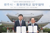 광주시와 동원대학교는 28일 지자체와 지역대학의 상생발전을 위한 업무협약을 체결했다고 밝혔다. 이날 협약식에는 방세환 광주시장, 이종원 동원대학교 총장 등 20여명이 참석했으며, 양 기관이 협력 체계를 구축하여 평생교육, 양질의 일자리 제공, 지역경제 활성화, 지역인재육성, 고등교육환경 개선 등을 위한 프로그램을 공동으로 추진하여 지자체와 대학이 상생의 길을 함께 가는 것을 목적으로 한다. 이번 협약 후 광주시와 동원대학교는 “▸평생‧직업교육, ▸일자리, ▸산업‧경제, ▸보건복지, ▸문화, ▸관광‧체육 등 6개 분야에서 상생협력 추진 전담 T/F를 구성하여 운영할 예정이며, 교육부에서 주관하는 ‘고등직업교육거점지구 공모사업’ 준비를 위한 컨소시엄을 시작으로 앞으로 광주시와 지역대학에 필요한 공동사업 등을 발굴하여 추진할 것”이라 말했다. 방 시장은 “이번 협약을 통해 청‧장년층 일자리, 지역경제, 지역대학 위기 등 문제를 해결하는데 시너지 효과가 나타나기를 기대하며, 이번 업무협약을 시작으로 향후 관내 모든 대학과 협력체계를 구축하는 방안도 검토하여 정부의 국정 방향에 맞춰 선제적으로 대응 하겠다”고 밝혔다. 한편 정부는 지난 2월 1일 구