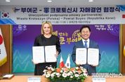 케이부동산뉴스 김교민 기자 | 부여군)은 지난 11일 부여군청에서 폴란드 비엘코폴스카주 크로토신시 대표단을 공식 초청해 자매결연 협정을 체결했다. 이번 협정은 2002년 충청남도와 자매결연을 맺은 폴란드 비엘코폴스카주 내 주요 도시인 크로토신시와의 교류를 기반으로, 광역단체와 기초단체 간 협력망을 확대하고 교류의 다양성과 다각화를 통해 지속 가능한 지방 외교 협력을 추진하기 위해 마련됐다. 협정식에는 박정현 부여군수와 김영춘 부여군의회 의장, 나탈리아 로바코프스카 크로토신시장, 크지스토프 마니스타 크로토신시의회 의장을 비롯해 양측 관계 공무원과 기업인 등이 참석했으며, 이날 행사는 ▲상호 소개 ▲협정서 서명 ▲기념품 교환 ▲기념 촬영 순으로 진행됐다. 양 도시는 2년에 걸친 대화와 상호 방문을 통해 협력의 폭을 넓혀왔으며, 이번 자매결연 체결을 계기로 ▲교육·문화·관광·체육 분야 교류와 ▲농업·경제 분야 등 산업 분야 협력을 중심으로 한 실질적 교류 확대에 나설 계획이다. 특히 부여군은 기존의 아시아 지역 중심의 문화교류에서 한 걸음 더 나아가, 폴란드의 중부 유럽 네트워크를 활용한 유럽 내 교류