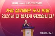 케이부동산뉴스 김교민 기자 | 김성제 의왕시장이 5일 시청 대회의실에서 2026년 신년 기자간담회를 열고 민선8기 의왕시 주요성과와 2026년 시정 운영방향에 대해 설명하는 시간을 가졌다. 김 시장은 “지난 3년 반은 의왕시의 새로운 미래를 준비하며 역동적으로 도약해 온 시간이었다”며, “대규모 도시개발과 복선전철 사업을 비롯해 교육과 복지, 문화‧예술, 일자리, 안전에 이르기까지 도시 전반에 걸쳐 혁신적인 변화를 만들어 왔다”고 평가했다. 특히, 오랫동안 해결되지 못했던 숙원사업들이 해결된 것을 의왕시의 주요 성과로 설명하며, 대표적인 사례로 의왕 문화예술회관 착공, 인덕원~동탄 및 월곶~판교 복선전철 착공, 내손중고통합학교 개교, 의왕 종합병원 유치 등을 꼽았다. 또한, 초평지구와 청계2지구 내 기업·투자 유치, 부곡커뮤니티센터 착공, 의왕역~판교 간 프리미엄버스 및 초평동 똑버스 신설, 의일로2 개통 등 도로망 확충, 22개 맨발걷기길 조성, 백운호수 생태탐방로 및 백운호수공원 개장, 의왕야구장 및 금천천 파크골프장 개장, 글로벌인재센터 부곡분원 개소, 노인 버스 무료승차 지원사업 추진, 장애인 힐링쉼터