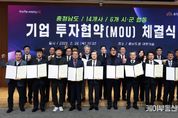 케이부동산뉴스 김교민 기자 | 국내외 기업 투자 유치를 핵심 과제로 추진 중인 충남도가 이번엔 14개 기업으로부터 5000억 원 이상의 투자를 이끌어내며 충남의 지속 가능한 미래 발전 발판을 다졌다. 김태흠 지사는 26일 도청 대회의실에서 김석필 천안시장 권한대행 등 6개 시군 단체장 또는 부단체장, 이동주 성창오토텍 대표이사 등 14개 기업 대표와 투자협약을 체결했다. 협약에 따르면, 14개 기업은 2029년까지 6개 시군 산업단지 등 50만 64㎡의 부지에 총 5090억 원을 투자해 생산시설을 신·증설하거나 이전한다. 이들 기업이 계획대로 가동할 경우 신규 고용 창출 인원은 526명으로 예상된다. 천안 북부BIT일반산단에는 4개 기업이 생산시설을 신·증설한다. 자동차용 부품업체인 성창오토텍이 2만 3225㎡부지에 542억 원을 투자해 공장을 새롭게 만든다. 또 반도체·PCB 표면 처리 장비 전문업체인 하이쎄미코가 132억 원을 투자해 6311㎡부지에 공장을 신설하며, 산업용 로봇 제조업체 아라는 100억 원을 투자해 1100㎡부지에 생산시설을 확장한다. 수입
