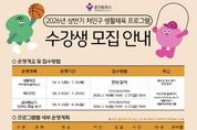 케이부동산뉴스 김교민 기자 | 용인특례시 처인구는 지역 주민의 건강 증진과 여가 활성화를 위해 3월 3일부터 ‘2026년 처인구 생활체육 프로그램’을 운영한다. 어린이부터 성인까지 누구나 즐길 수 있는 생활체육 프로그램은 처인구 지역 9개 장소에서 6개 종목, 14개 강좌가 진행된다. 성인을 위한 생활체조(에어로빅, 줌바댄스)와 배드민턴 강좌는 3월부터 운영한다. 생활체조는 사전 신청 없이 현장에서 참여할 수 있고, 배드민턴은 사전 접수한 수강생을 대상으로 진행한다. 어린이를 위한 유소년 프로그램은 ▲음악줄넘기 ▲인라인스케이트 ▲풋살 ▲농구 등 4개 종목이며, 4월부터 상반기 수업을 시작한다. 모든 강좌는 무료로 운영되며 유소년 프로그램은 3월 16일부터 처인구 누리집에서 선착순 모집한다. 구 관계자는 “많은 시민이 체육활동을 통해 건강 증진과 일상 속 활기를 느낄 수 있도록 다양하고 알찬 프로그램을 마련해 운영하겠다”고 말했다.